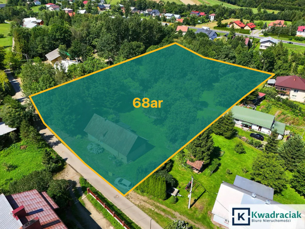 Działka: 68 ary (numer działki 1962/2, 1962/1), klasa gruntu IV, brak miejscowego planu zagospodarowania przestrzennego.