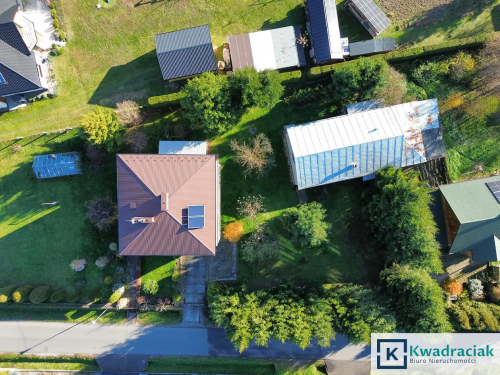 Dom jest parterowy z poddaszem użytkowym, z bezpośrednim dostępem do drogi gminnej. Na działce znajdują się wiata oraz garaż blaszany, co stanowi dodatkową przestrzeń do przechowywania lub użytkowania. Nieruchomość jest w całości ogrodzona, co zapewnia prywatność i bezpieczeństwo mieszkańcom. Działka obfituje w liczne nasadzenia – rosną tu drzewa owocowe, takie jak jabłonie, czy śliwy, a także krzewy ozdobne. Dzięki temu otoczenie domu jest niezwykle zielone, pełne życia i uroku przez cały rok, tworząc doskonałą przestrzeń do wypoczynku, relaksu oraz uprawy własnych owoców. Na terenie posesji znajduje się także studnia głębinowa, zapewniająca niezależny dostęp do wody.