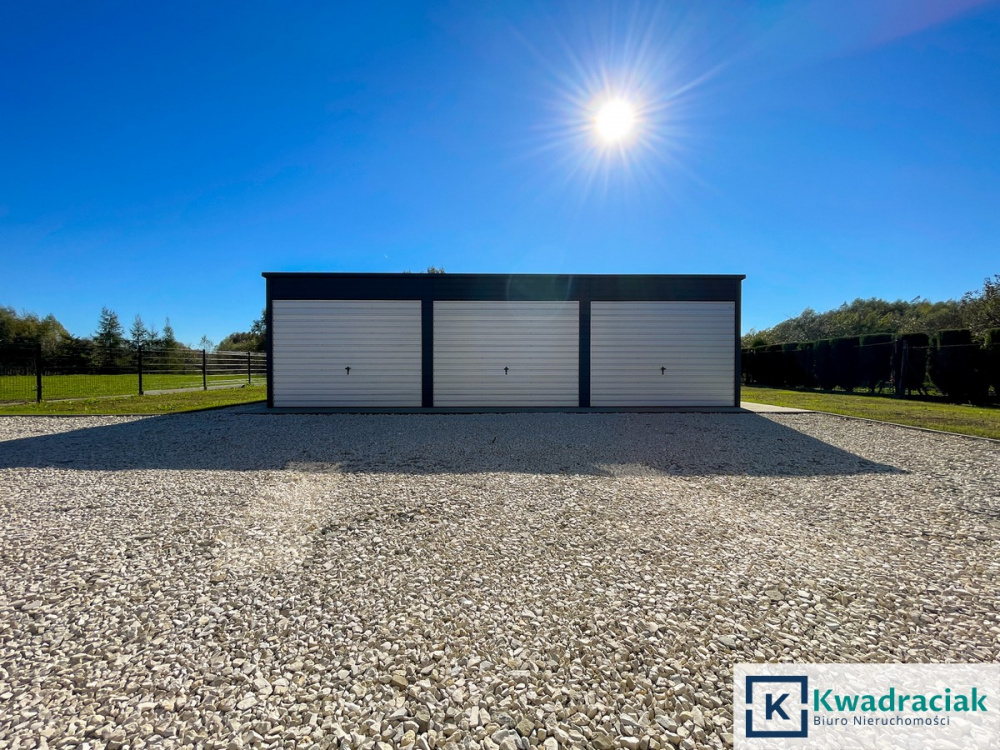 ... (pokaż całość)z kutych elementów), z własną studnią oraz licznymi zabudowaniami gospodarczymi: trzema garażami – każdy z bramą na pilota, wiatą i drewutnią – co daje dodatkowe możliwości przechowywania, prowadzenia działalności czy majsterkowania. Brama wjazdowa również sterowana na pilota). Podjazd do nieruchomości wyłożony kostką brukową.