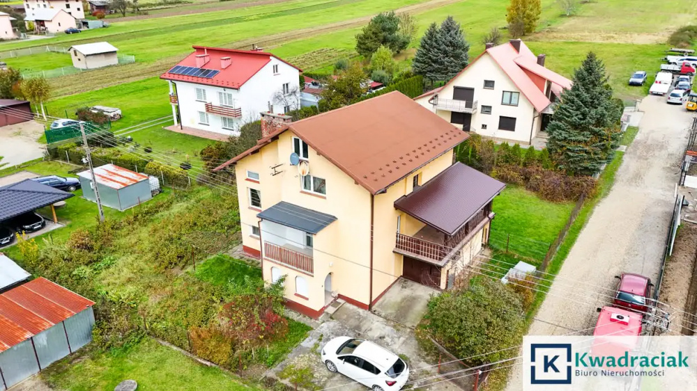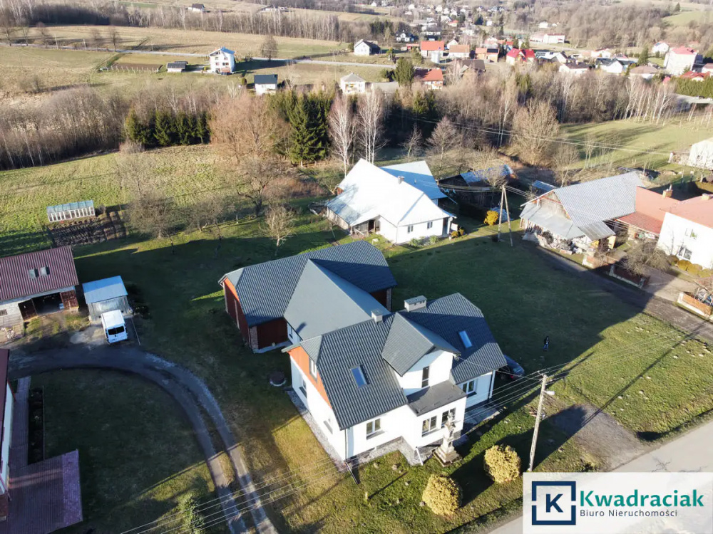 Dodatkowy metraż tworzy garaż, znajdujący się w bryle domu. Dom został oddany do użytku w 1999 roku. Nieruchomość znajduje się na działce o powierzchni 15 ar. Dojazd do domu bezpośrednio z drogi powiatowej. Działka równa, zagospodarowana z licznymi nasadzeniami oraz drzewami.