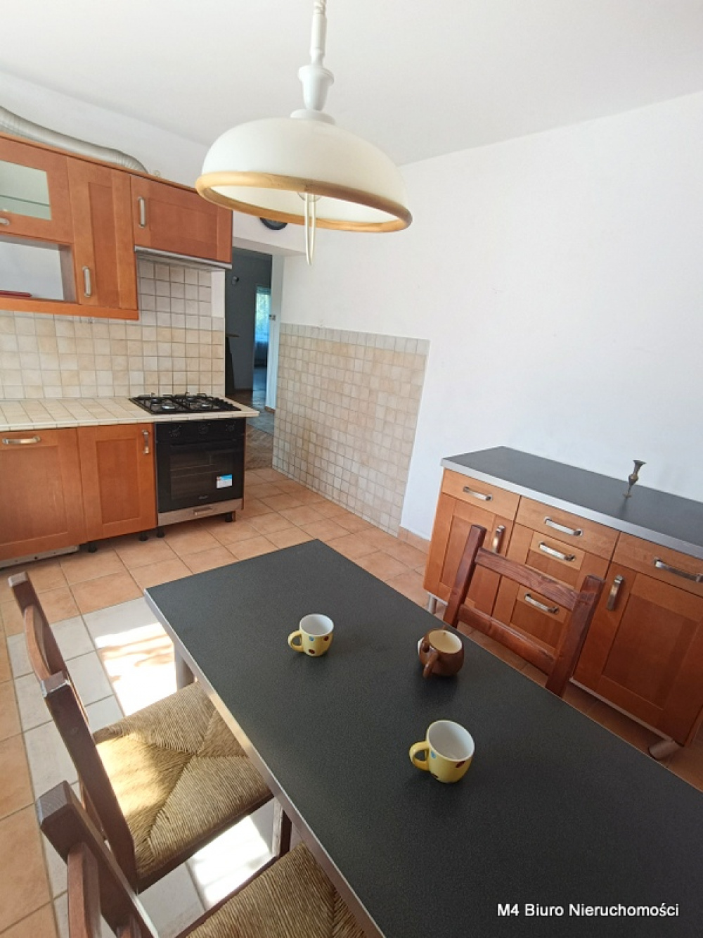 Dom składa się z przestronnego parteru, na którym znajdują się trzy pokoje, kuchnia, łazienka oraz przedpokój z gankiem. Na piętrze czekają dwa kolejne pokoje, oddzielna kuchnia, kolejna łazienka oraz pomieszczenie do przechowywania – świetne na dodatkową przestrzeń. Ogrzewanie gazowe zapewnia ciepło w chłodniejsze dni, a kominek rozprowadzony w całym domu dodaje wnętrzom przytulnej atmosfery i ciepła.