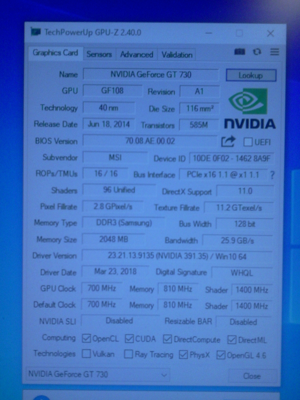 1). NVidia GT 730/ 2 GB/ 128 Bit