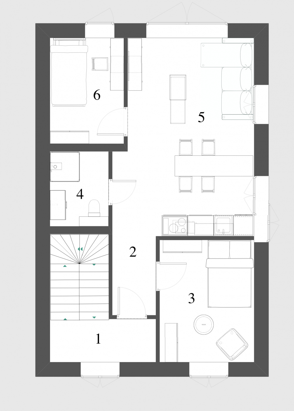 ✔ Dom o powierzchni użytkowej ok. 70 m² – funkcjonalny układ pomieszczeń: