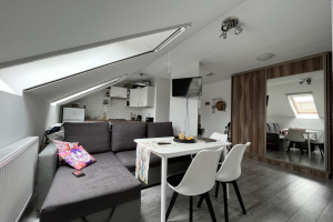Wynajmę bezczynszowe mieszkanie położone w kamienicy w centrum miasta, na drugim piętrze (poddasze) o powierzchni 29 m². Mierząc 'po podłodze' około 45 m². Zarówno budynek jak i mieszkanie w 2019 roku przeszło generalny remont. Wymienione zostały instalacje, okna, drzwi oraz podłogi. Nieruchomość ogrzewana piecem gazowym dwufunkcyjnym, na podłogach w salonie i sypialni panele, natomiast w łazienc
