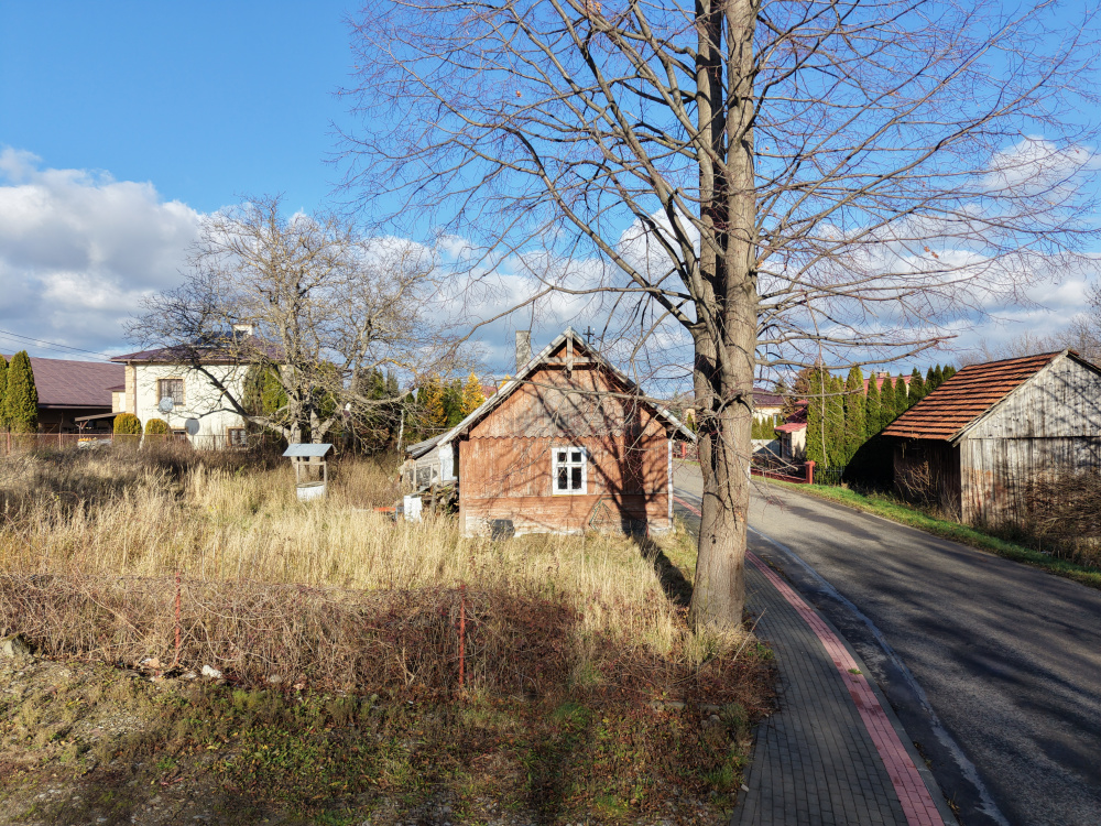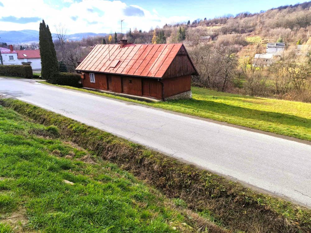 Powierzchnia: 20 ar plus dodatkowo po drugiej stronie drogi nad strumykiem działka 4 ar z drewnianą stodołą