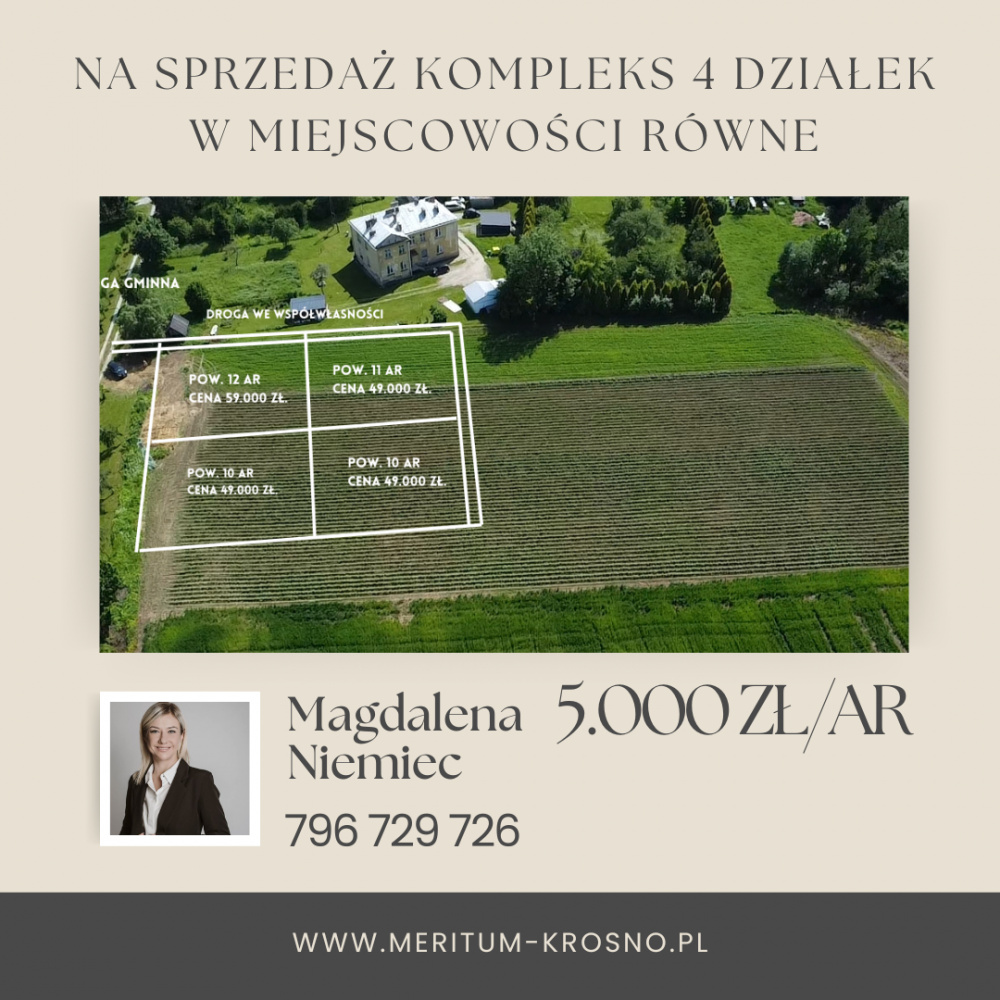 KOMPLEKS 4 DZIAŁEK BUDOWLANYCH W MIEJSCOWOŚCI RÓWNE!!