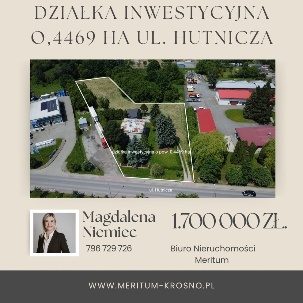 Oferujemy na sprzedaż atrakcyjną działkę inwestycyjną o powierzchni 0,77 ha, położoną w strategicznej lokalizacji przy ul. Tysiąclecia w Krośnie.