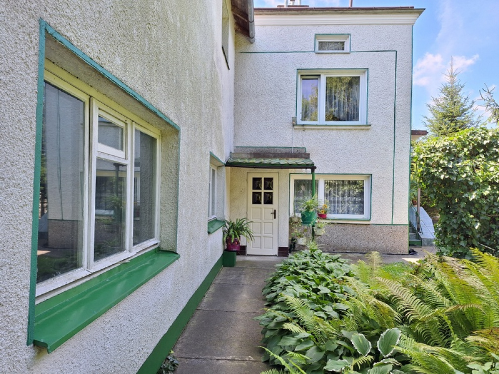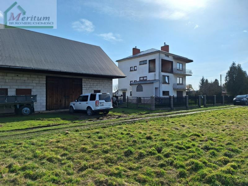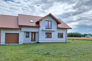 Dom usytuowany jest na 10 arowej działce, w kształcie prostokąta, częściowo ogrodzonej.