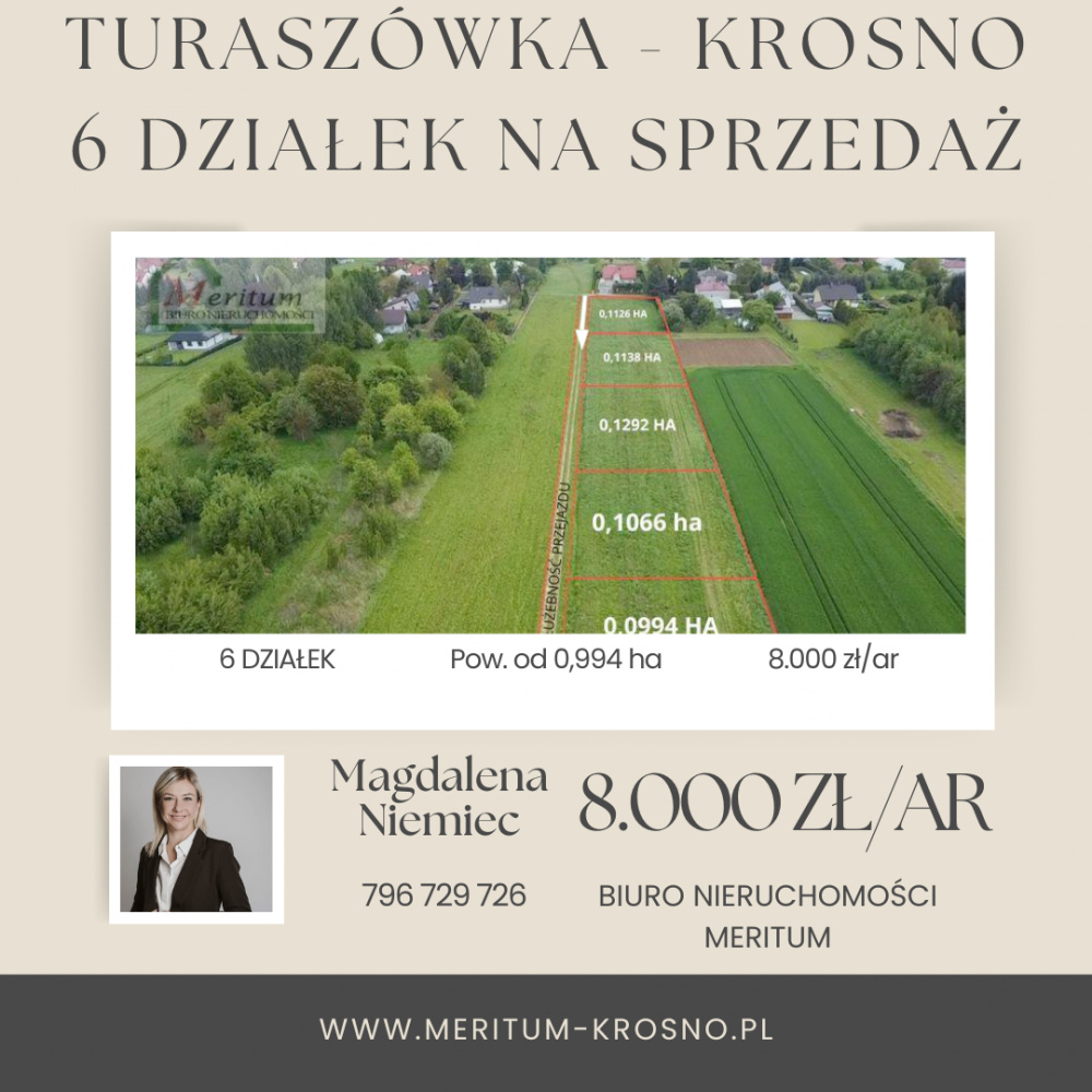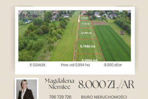 Cena: 8 000 zł./ar- trzy kolejne działki