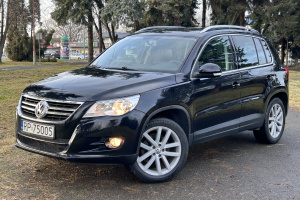 Volkswagen Tiguan z silnikiem 2.0 benzyna 170KM z przebiegiem 256.000km z 2009 roku. Samochód bardzo zadbany, niezniszczony zarówno na zewnątrz jak i wewnątrz. Sprawna klimatyzacja jak i całe wyposażenie dodatkowe.