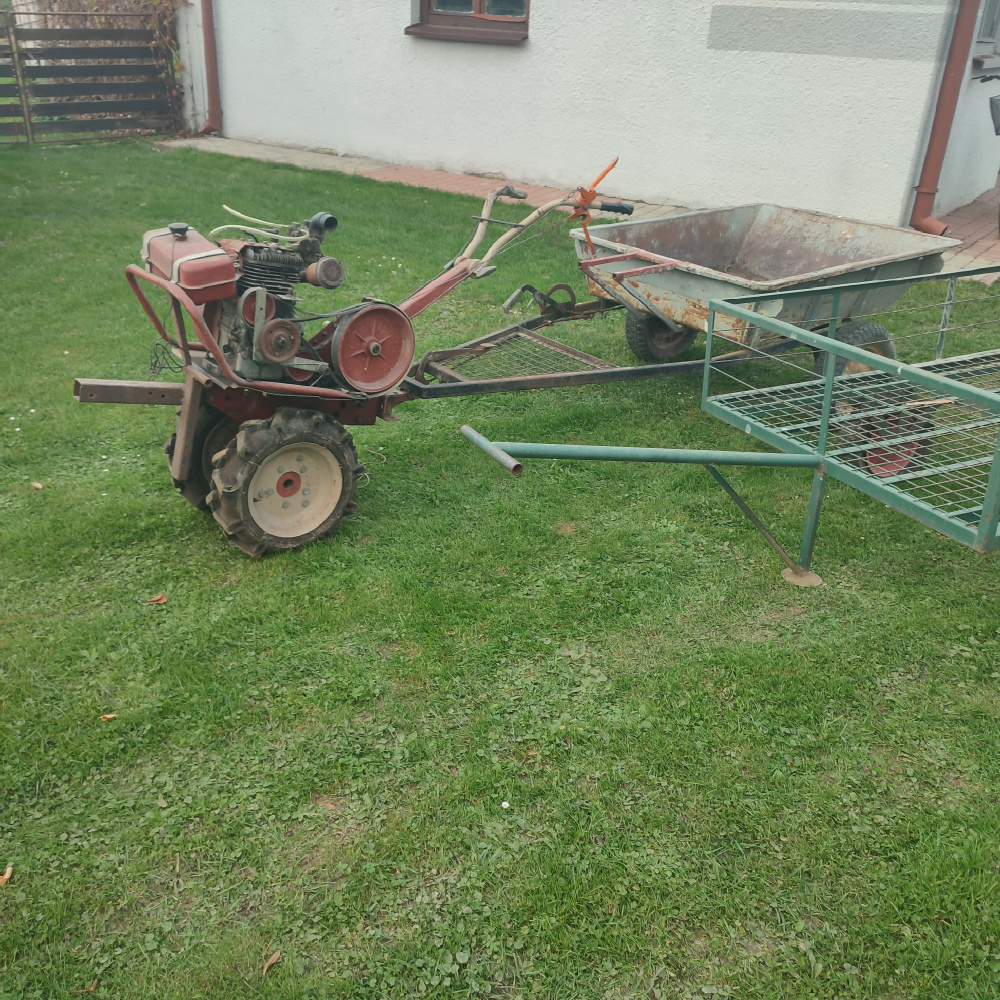 Sprzedam zestaw ze zdjeć traktorek jednoosiowy z przyczepką plus duży solidny wòzek ..
