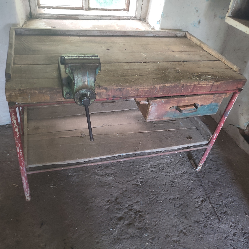 Stolik z dużym ! Starym imadłem imadłem 350 zł