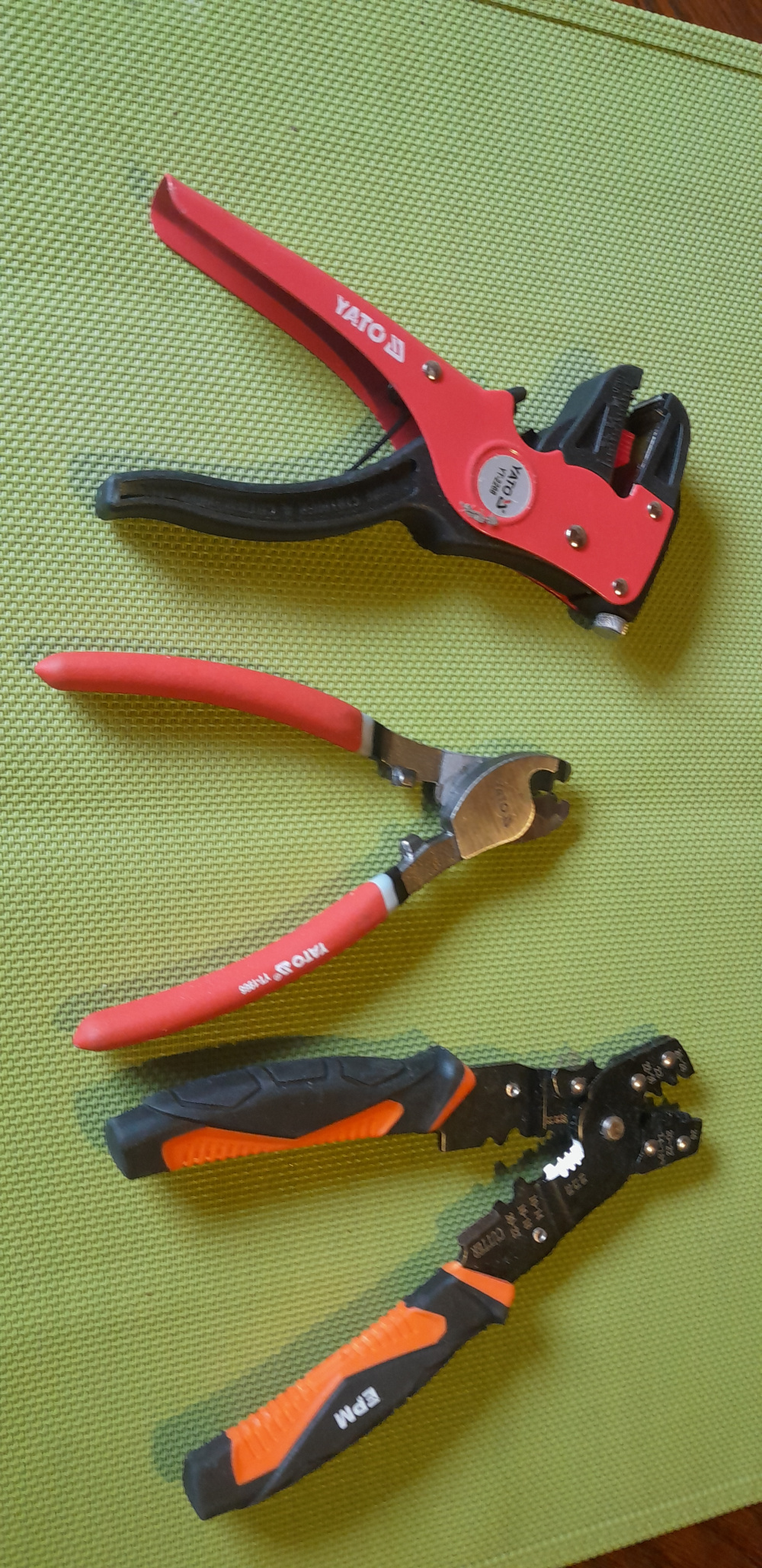 Komplet obcinaki boczne księżycowe, ściągacz izolacji, zagniatarka końcówek rurkowych. Nowe.