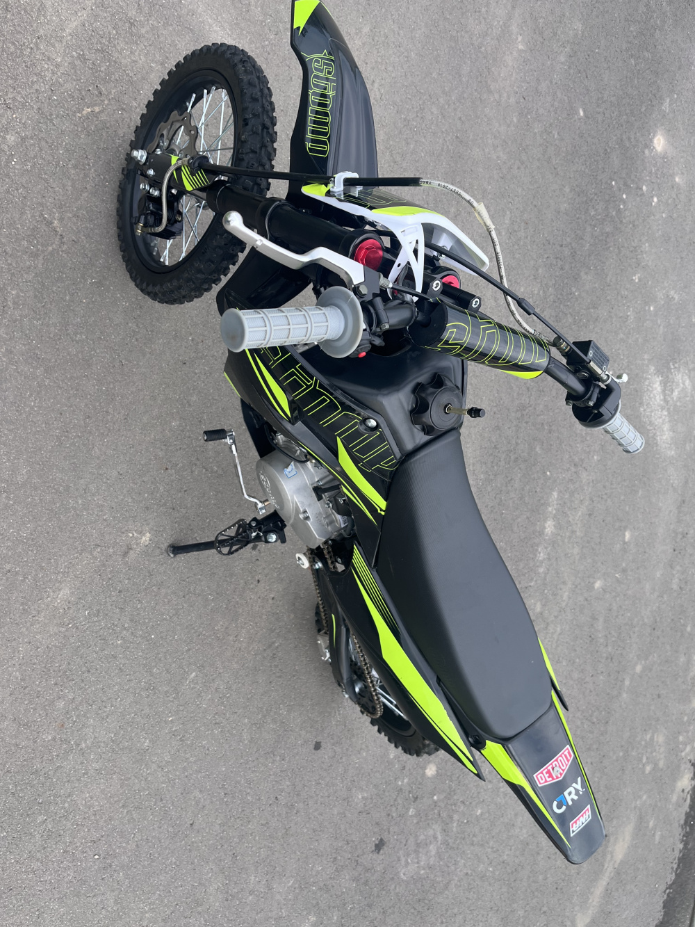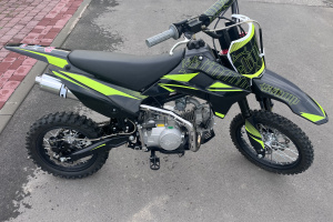 Witam, na sprzedaż wystawiam pitbike firmy Stomp o pojemności 125 cm3. Motocykl od nowości był użytkowany w jeździe rekreacyjnej po łąkach 6-7 razy a więc jest praktycznie nowy. Większość czasu stał w garażu i był odpalany co jakiś czas. Wystarczy wymienić olej i można jeździć. Cena do rozsądnej negocjacji.