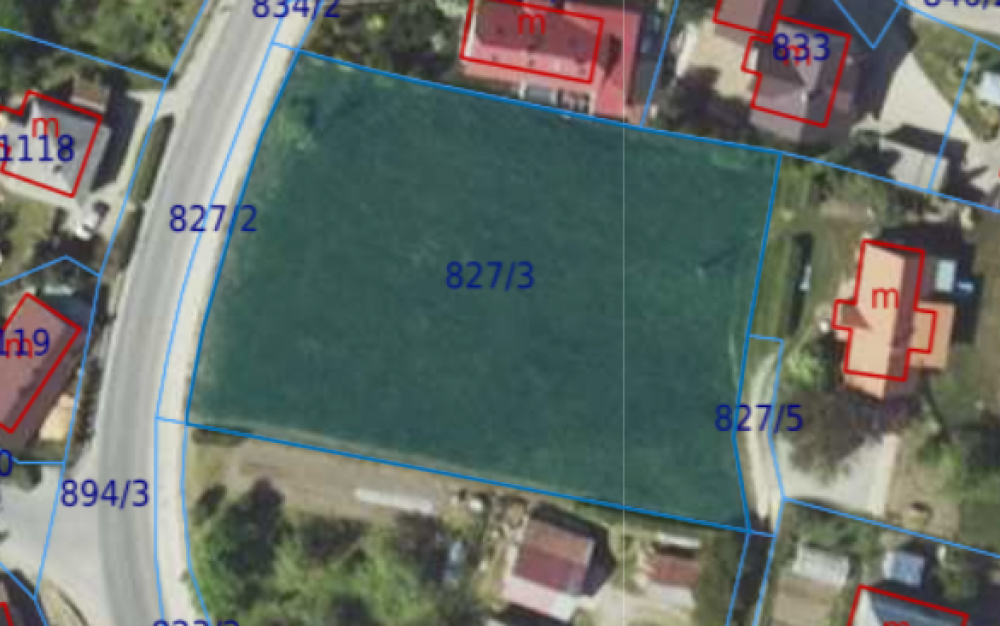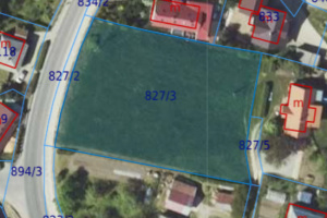 Działka o wielkości 25 arów, w kształcie zbliżonym do prostokąta o wymiarach 44x56-65m. Znajduje się bezpośrednio przy drodze.