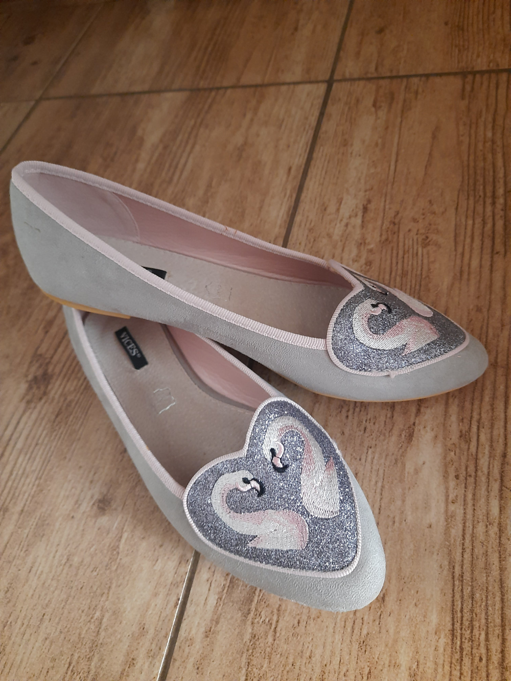 Sprzedam balerinki damskie szare rozmiar 41 zaniżony jak 40 - 20 zł