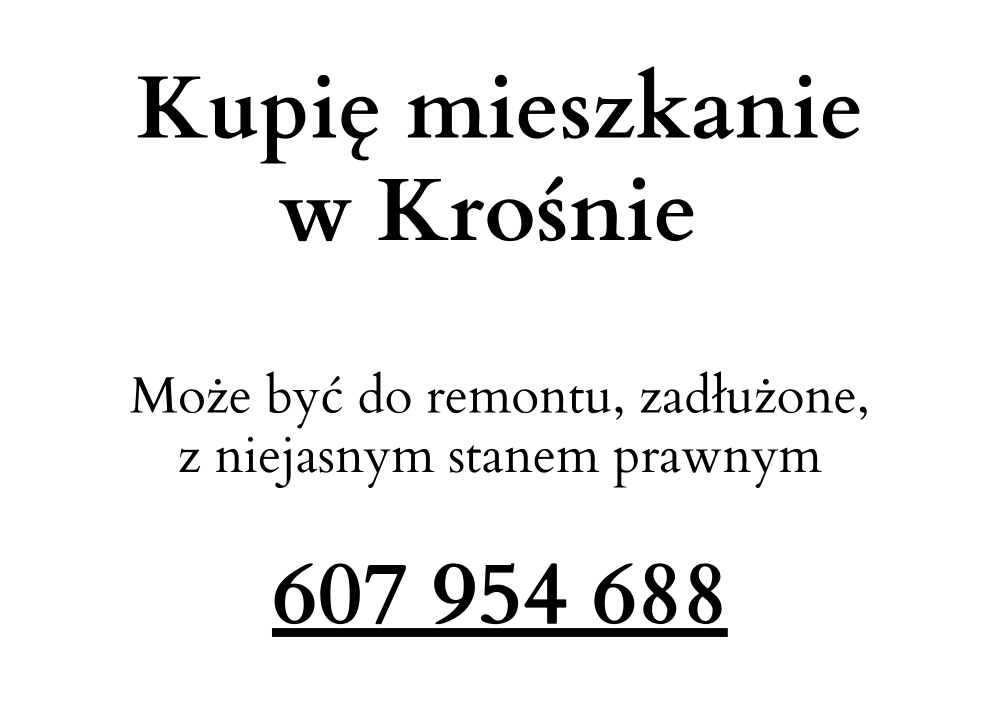 Jesteśmy zainteresowani zakupem mieszkań, domów, działek i lokali na terenie Krosna i okolic. Szybka decycja i sprawna finalizacja.