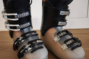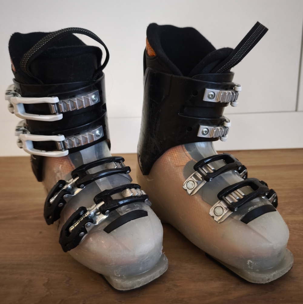 Sprzedam dziecięce buty narciarskie Dalbello rozmiar 32. Długość skorupy 249mm. Buty były używane przez dwójkę moich dzieci w sumie przez 4 sezony, a od roku stoją sobie w garażu. Widać na nich ślady użytkowania, ale są w pełni sprawne, a skorupa nie jest nigdzie pęknięta. Wkładki całe i nie poprzecierane.