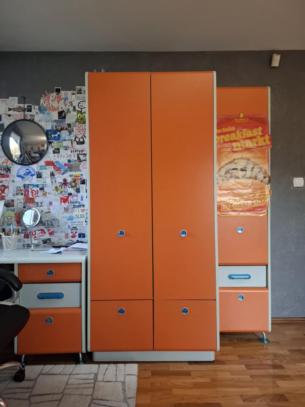 Do sprzedania używane meble: - szafa dwudrzwiowa - słupek z półkami zamykany - biurko - regał z półkami i szafkami - komoda 80 cm zamykana - komoda 40 cm zamykana