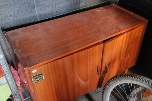 Do sprzedania stary kredens wymagający odnowienia, bez środkowej półki, szyb i kluczyka.