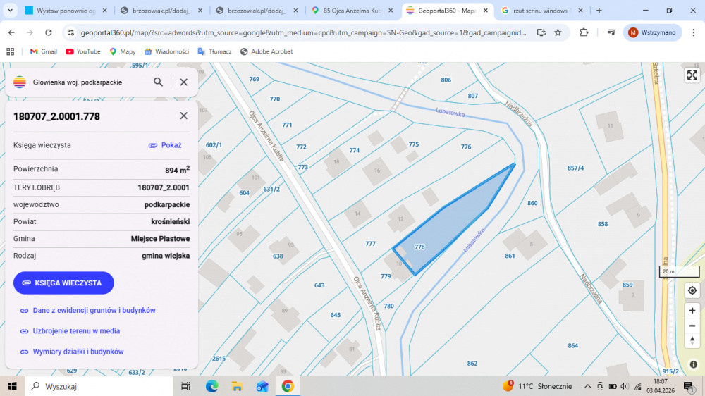 Oferowany lokal jest z udziałem w prawie użytkowania działki nr 3023/25 o pow. 1,0034 ha.