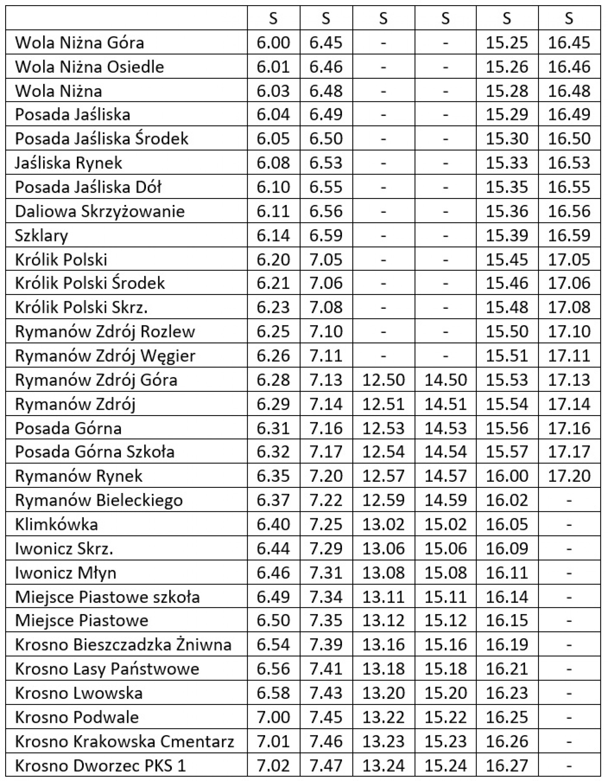 S – kursuje w dni nauki szkolnej