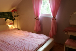 Domek może pomieścić od 6 do 8 osób : na piętrze są 3 pokoje 2-os z możliwością dostawek.