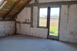 Dom do wykończenia, dlatego na tym etapie można łatwo dostosować budynek do własnych wymagań i potrzeb, dodatkowo duża powierzchnia działki wokół domu daje dużo możliwości do jej wykorzystania i zagospodarowania.