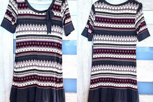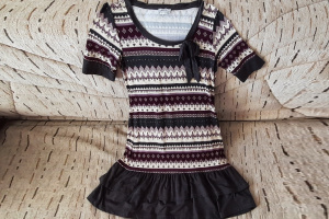 Witam. Sprzedam turecką, bardzo dziewczęcą i uroczą sukienkę, z oryginalnym wzorem i z fajnego materiału; bardzo miła w dotyku, lekko rozciągliwa, rozmiar EU 36-38, wielokolorowa, zakończona dwiema falbanami. Przybliżone wymiary: długość 97 cm, obwód biustu 90/92 cm, krótki rękaw (długość z mankietem 29 cm). Stan bardzo dobry (zdjęcia), jak nowa. Sukienka przewiewna, pięknie układa się na sylwetce, bardzo efektowna, praktyczna i wygodna, całoroczna, można prać w pralce (nie wymaga prasowania). Cena 25 zł.