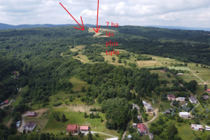 Do sprzedaży działka o powierzchni 7 ha w jednym kawałku położona na wzgórzu z czego 4 ha stanowi las oraz 3 ha łąka.