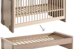 Łóżko nawiązujące do najnowszych trendów włoskiego designu zrobione jest z płyty laminowanej w oryginalnym kolorze szarego dębu łączonego z dębem cremona. Podłoga łóżka, listwy nóg oraz boczki szczeblinowe wykonane są z drewna malowanego na jasny kolor. Łóżko posiada trzy poziomy regulacji wysokości podłogi oraz możliwość przerobienia na tapczanik dla starszego dziecka. Do łóżka jest materac. Wymiar 140X70 Odbiór osobisty lub możliwość transportu.
