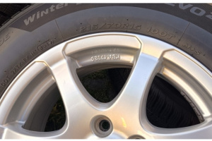 Mam do sprzedania komplet kół do Hyundai Tucson, Kia, Honda, Mazda, Toyota, Mitsubishi, Renault. Felgi aluminiowe rozstaw śrub 5 x 114,3. Średnica otworu centralnego – 67,1 mm. 7Jx16 H2 RT45 są jak nowe bez uszkodzeń mechanicznych i zarysowań. Opony zimowe HANKOOK 215/70 R16 T 100 w stanie jak na zdjęciu wysokość bieżnika 8 mm.