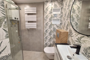 W mieszkaniu zostały wymienione: elektryka, hydraulika, podłogi, stolarka drzwiowa. Zostały położone gładzie, zrobiono meble kuchenne na wymiar, wymieniony junkers.