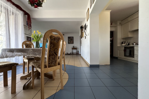 Oferuję na sprzedaż klimatyczny dom koło Krosna o podwyższonym standardzie na działce 18 arowej Dom posadowiony jest na płaskiej, zagospodarowanej, 18 arowej działce o regularnym kształcie prostokąta z pięknym ogrodem. Powierzchnia użytkowa domu to 193 m2 plus garaż na 2 samochody w bryle budynku o powierzchni 33 m2. Na powierzchnię użytkową składają się 2 kondygnacje budynku tj : parter oraz użytkowe poddasze. Nieruchomość wyposażona jest w całą niezbędną infrastrukturę mediów , w tym gaz, prąd, wodę,kanalizację oraz internet. Dom ogrzewany jest za pomocą pieca gazowego wymienionego w 2018 roku a cała elewacja budynku została ocieplona i zmodernizowana w 2015 roku. Dodatkowo na dachu została założona instalacja fotowoltaiczna co pozwala bardziej ekonomiczną eksploatację. Dom nie wymaga żadnego wkładu finansowego a standard jego wykończeń można uznać za podwyższony. Dojazd do nieruchomości bezpośredni z drogi asfaltowej na drogę drogą utwardzoną kostką , która również została użyta do zagospodarowania części działki wokół nieruchomości. Cała posesja w większości ogrodzona. Wysoki standard wykończeń, brak wkładu w remont, świetna lokalizacja oraz piękny ogród to kolejne argumenty świadczące o wysokiej atrakcyjności tego domu. Zapraszam na prezentację nieruchomości. Więcej szczegółowych informacji udzielę telefonicznie.