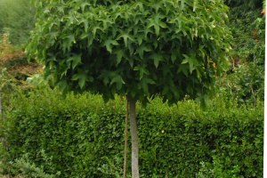 ambrowce amerykańskie Gum Ball sczepione na wysokości 1,8-2,2m z rozrośniętą koroną obwód pnia na wysokości metra 8-10 cm. Ten ambrowiec tworzy sam idealną kulę oraz pięknie przebarwia się na kolor czerwieni i pomarańczy