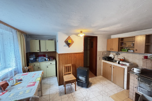 Na parterze znajdują się: 2 pomieszczenia w których znajduje się kuchnia z piecem kaflowym i pokój a także łazienka i dwie piwnice.
