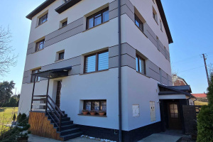 Mieszkanie o pow. użytkowej 84,08m2 położone jest na I piętrze budynku, posiada funkcjonalny układ pomieszczeń i składa się z: przestronnego jasnego salonu połączonego z jadalnią, z możliwością bezpośredniego wyjścia na zadaszony balkon, dwóch sypialni, odrębnej jasnej kuchni, łazienki z wanną i prysznicem, osobnej toalety oraz przedpokoju. Na podłogach panele i płytki, na ścianach gładzie oraz tapety. W łazience zamontowany jest kilkuletni piec firmy Viessmann, dodatkowo w kotłowni nowy piec na pellet. Mieszkanie jest starannie i estetycznie wykończone, w całości urządzone i wyposażone w w sprzęt AGD oraz meble – sprzedawane z całym dostępnym wyposażeniem.