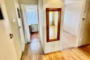 Mieszkanie charakteryzuje się również dobrym rozkładem pomieszczeń, co sprzyja codziennemu komfortowi użytkowania. Na podłogach znajdują się panele, a na ścianach stonowane kolory, które nadają wnętrzu przytulny charakter.