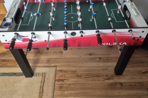 Sprzedam w bardzo.dobrym stanie piłkarzyki stoł stojący. Szarość 60 cm długość 120 cm wysokość około 95 cm. Kompletny praktycznie nie używany.