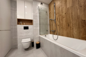 W skład mieszkania wchodzi przestronny salon z odrębnym aneksem kuchennym, sypialnia i łazienka, a także pokój z wyjściem na balkon, który zapewnia miejsce do relaksu. Dla mieszkańców przewidziano miejsca parkingowe ogólnodostępne, co jest istotnym atutem dla właścicieli samochodów.