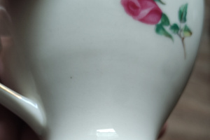 Znakomity stan vintage, praktycznie bez śladów użytkowania. Jedynie drobne uszkodzenie jednego spodka i dna jednej filiżanki (jak na zdjęciach).