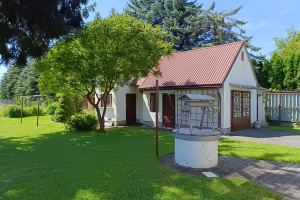 Poddasze z kolei czeka na Twoją kreatywność — możesz je zaadaptować. Dom wymaga remontu i odświeżenia, co daje Ci wyjątkową szansę na urządzenie go całkowicie po swojemu. Wewnątrz znajdują się tynki cementowe, podłogi z drewnianych desek oraz stare, drewniane okna — baza idealna do modernizacji. Dach pokryty blachą. Ogrzewanie domu zapewnia piec gazowy, a wszystkie media są dostępne ( prąd, gaz, kanalizacja, wodociąg). Wokół domu, jak i na podjeździe ułożono kostkę brukową. Dodatkowo odwodnienie zapewnia komfort i bezpieczeństwo przez cały rok. Na posesji stoi również murowany budynek gospodarczy, który świetnie sprawdzi się jako garaż, miejsce na narzędzia lub dodatkowe przechowywanie. Działka jest ogrodzona, pięknie utrzymana, obsadzona kwiatami i drzewami, tworząc kameralną, zieloną przestrzeń do odpoczynku i relaksu. To wyjątkowa okazja dla osób, które cenią sobie spokój, przestrzeń i chcą zainwestować w nieruchomość z potencjałem. Zapraszamy do kontaktu i obejrzenia tej nieruchomości na żywo — przekonaj się, jak wiele może zaoferować Twój nowy dom w Krośnie!