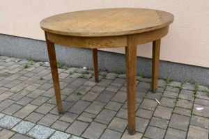 Sprzedam stół okrągły rozkładany z okresu PRL Widoczny na zdjęciach o wymiarach średnica 100 cm wysokość 77,5 cm po rozłożeniu 145 cm stół jest stabilny