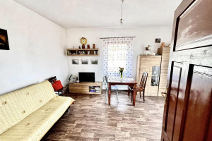 W budynku są pomieszczenia mieszkalne gdzie znajdują się: kuchnia, pokój, pomieszczenie gospodarcze stanowiące obecnie składzik właściciela a także pomieszczenie z surowego bala do adaptacji na dodatkowy pokój, przestronny przedpokój oraz duża łazienka. Z niewykończonego pomieszczenia prowadzi wejście drewnianymi schodami na strych - obecnie nieużytkowy.