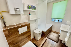 Mieszkanie posiada także możliwość korzystania z części piwnicy i strychu, przez co zwiększa się jego funkcjonalność.