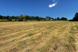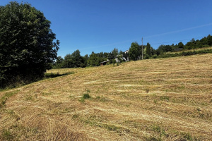 Działka lekko nachylona, z pięknym widokiem na okoliczne wzgórza i tereny zielone.