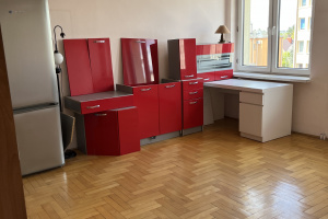 Mieszkanie składa się z 2ch dużych i nieprzechodnich pokoi, kuchni oraz łazienki. Powierzchnie pokoi i usytuowanie okien umożliwia wykonanie w pokojach ścianek działowych celem zwiększenia liczby pomieszczeń. Na wyposażeniu mieszkania znajduje się: meble kuchenne, kanapa, szafa, biurko, lustro, lodówka, kuchenka, wanna, umywalka, toaleta. Wyposażenie sprzedawane jest łącznie z mieszkaniem.