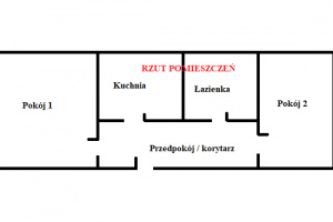 Mieszkanie składa się z dwóch dużych i nieprzechodnich pokoi, kuchni oraz łazienki. Powierzchnie pokoi i usytuowanie okien umożliwia wykonanie w pokojach ścianek działowych celem zwiększenia liczby pomieszczeń. Na wyposażeniu mieszkania znajdują się: meble kuchenne, kanapa, szafa, biurko, lustro, lodówka, kuchenka, wanna, umywalka, toaleta. Wyposażenie sprzedawane jest łącznie z mieszkaniem.