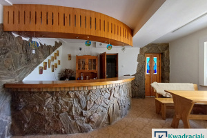 Przyziemie: kuchnia z pomieszczeniami roboczymi, duża jadalnia z barem, łazienki.