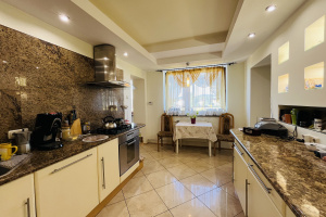 Oferuję na sprzedaż przestronny i komfortowy dom o powierzchni użytkowej około 170 m², położony w Krośnie. Dom usytuowany na ogrodzonej i w pełni zagospodarowanej działce o powierzchni 32 arów, wraz z dwoma garażami w bryle budynku. Nieruchomość wybudowana z pustaka końcem lat 60tych, pokryta blachodachówka, okna w całym domu plastikowe dwuszybowe, elewacja budynku ocieplona styropianem. Ogrzewany piecem gazowym dwufunkcyjnym ( na piętrze część pomieszczeń z ogrzewaniem podłogowym), w pokojach na podłodze położony parkiet i terakota. Dojazd bezpośrednio z drogi miejskiej asfaltowej, podwórko wyłożone jest kostką brukową, z tyłu domu oczko wodne z licznymi nasadzeniami. Nieruchomość gotowa do wprowadzenia, bez żadnych nakładów finansowych.